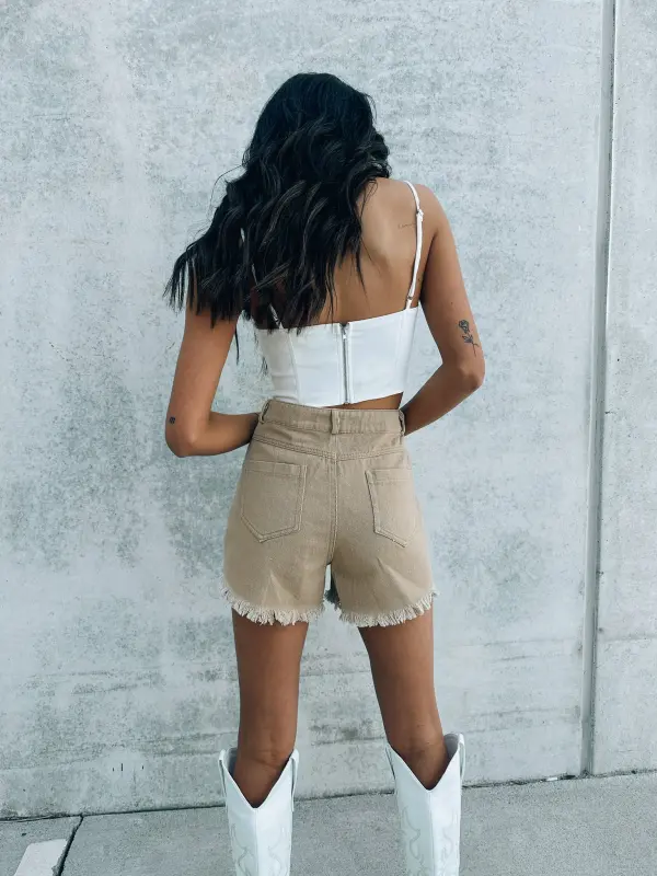 Our Samantha Corset Top is a ultra structured corset top with structural boning throughout. This top features adjustable straps, exposed back zipper closure, amd pleated detail across the square neckline. This top is completed with and pointed hemline. This top does run small and if in between sizes we recommend sizing up.