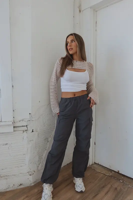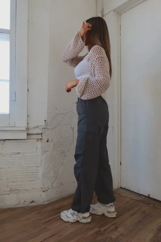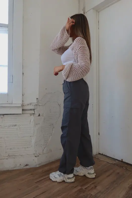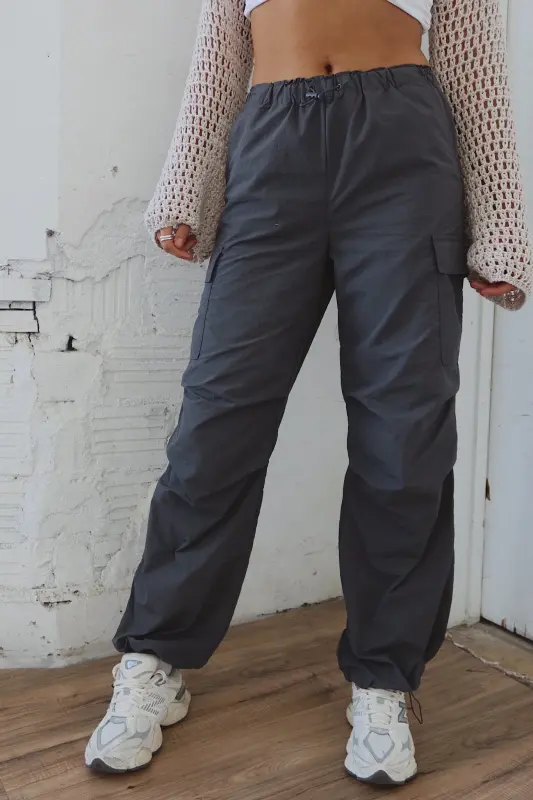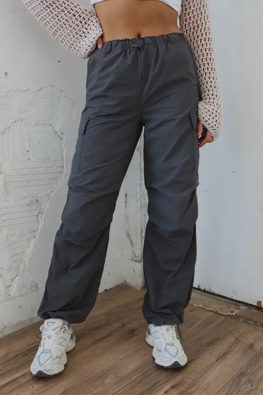 Our Slate Cargo Joggers are the ulitmate trendy jogger! These joggers feature a stretch elastic waistline, functional front pocket detail, and elastic ankle detail. There are two side pockets half way down the legs. These joggers have an adjustable elastic fastening at the waist and the ankles. These sweatpant joggers fit true to size and have a some stretch throughout.